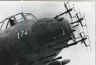 cuatro MG17/7.9mm en la nariz; cuatro cañones MG151/20mm en la parte baja de la nariz; cuatro MG151/20mm en la dorsal con disparo hacia ariiba en 70° |