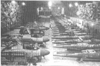Vista de la mina de sal de Tartun con He 162 en terminacion